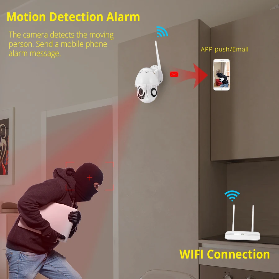 Product Name: Hiszpania zdjęcie szybka dostawa KERUI zewnętrzna wodoodporna bezprzewodowa 1080P 2MP PT WiFi kamera IP prędkość kamera kopułkowa CCTV nadzór