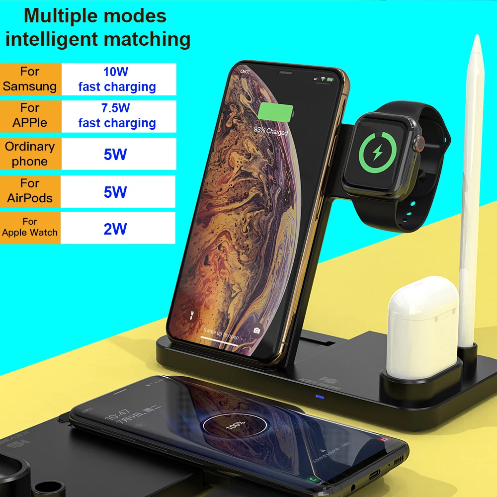 Product Name: KEYSION szybka ładowarka bezprzewodowa 4 w 1 dla iPhone 11 XR, stojak do bezprzewodowego ładowania dla Apple Watch, stacja ładująca stacja dokująca dla Airpods