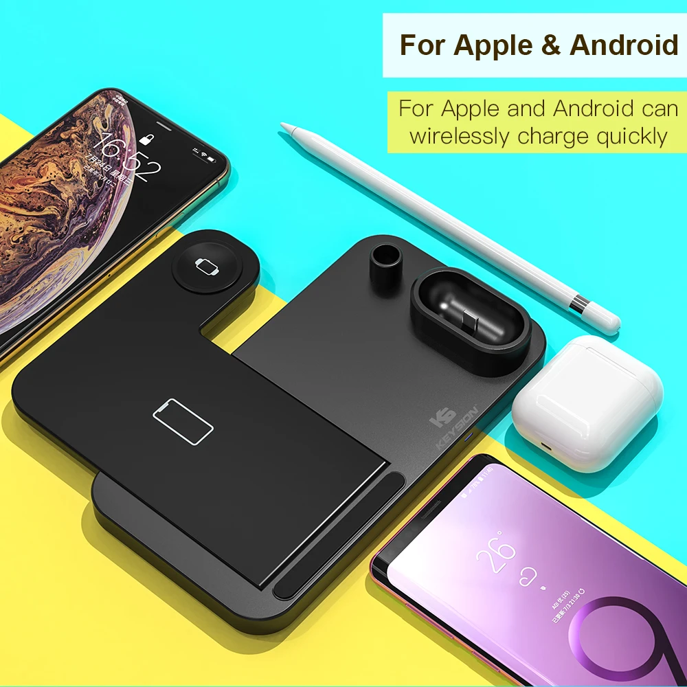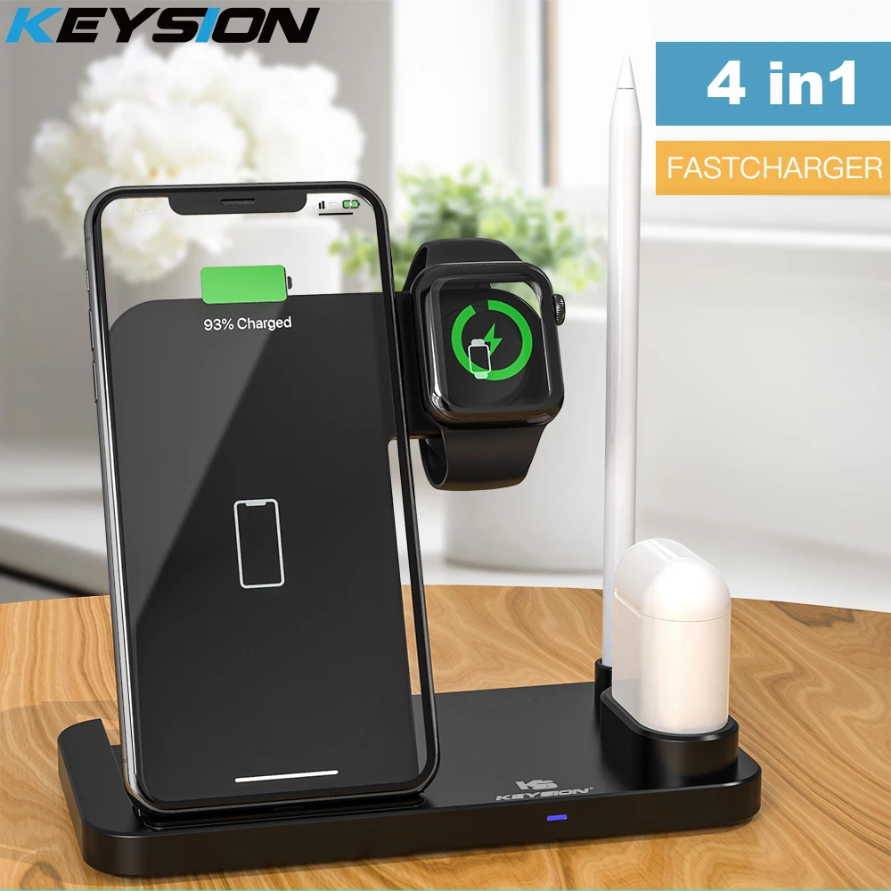 Special Offer KEYSION szybka ładowarka bezprzewodowa 4 w 1 dla iPhone 11 XR, stojak do bezprzewodowego ładowania dla Apple Watch, stacja ładująca stacja dokująca dla Airpods Discount 30% Today!