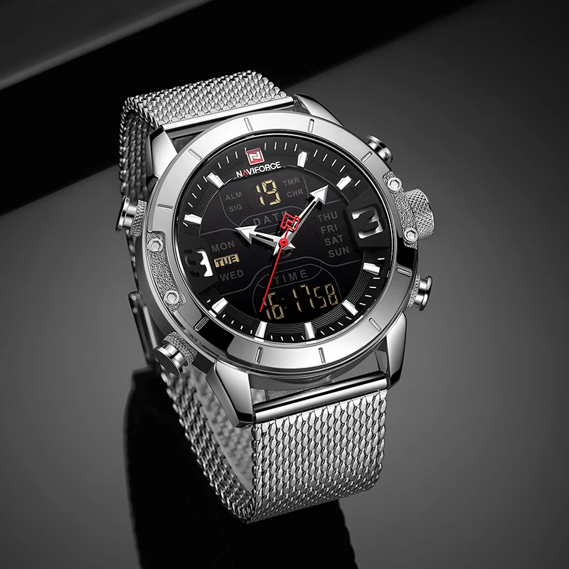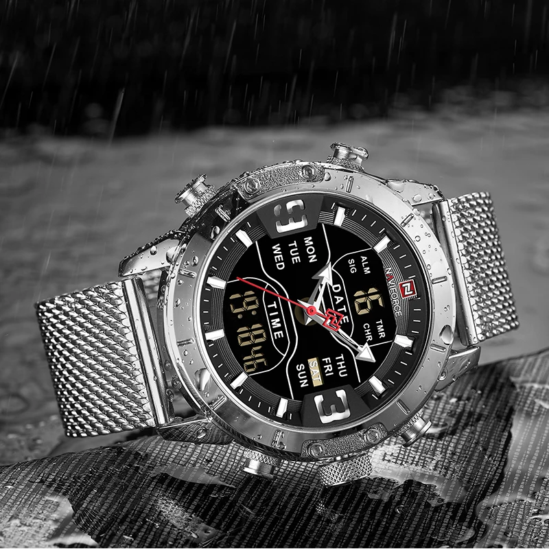 Product Name: NAVIFORCE męskie zegarki Top luksusowa marka mężczyźni zegarki sportowe męskie kwarcowy LED cyfrowy zegar męski pełny stalowy wojskowy zegarek na rękę