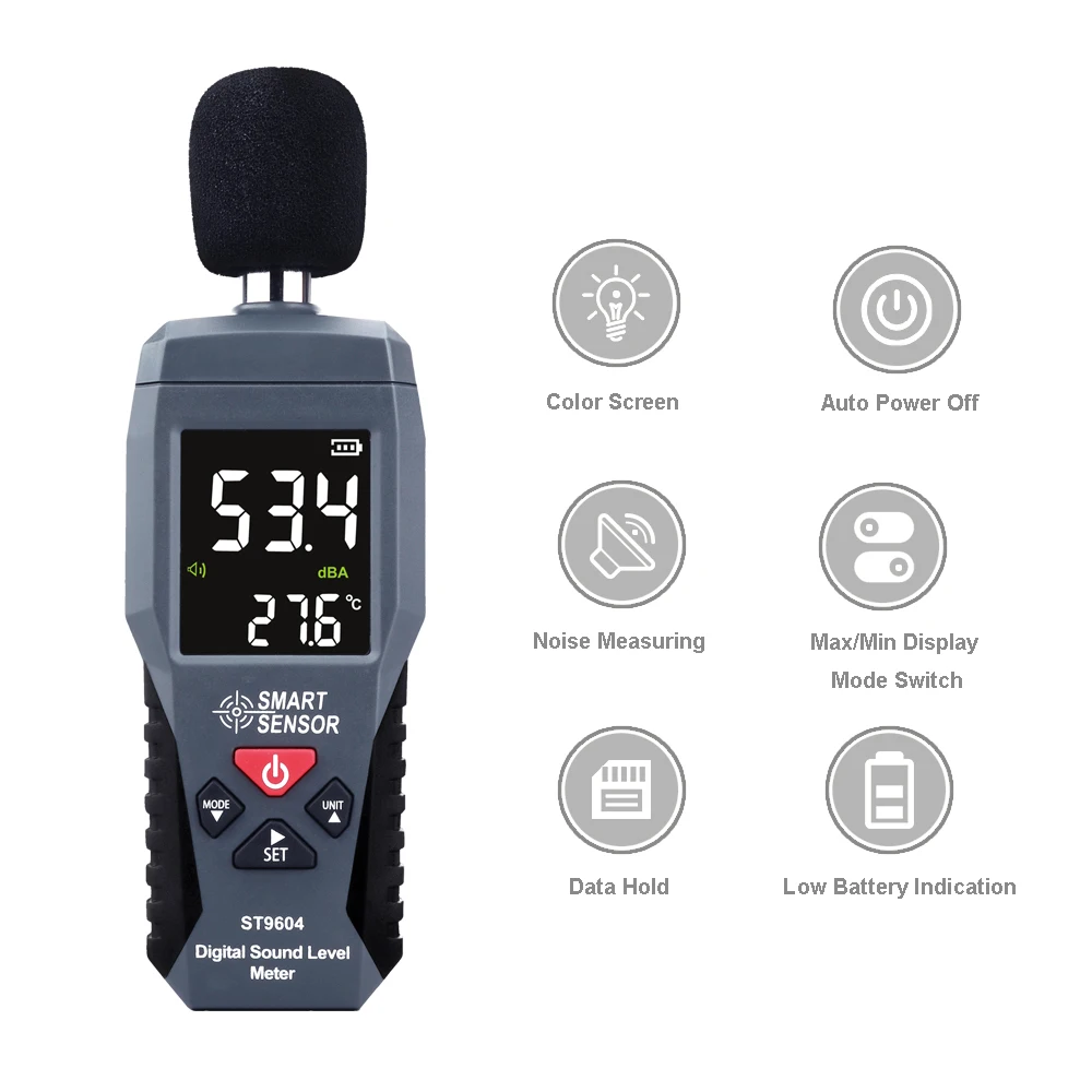 Special Offer Cyfrowy miernik poziomu dźwięku kolorowy wyświetlacz lcd db Decibel monitor miernik poziomu dźwięku tester 30 130dB pomiar hałasu narzędzie diagnostyczne Alarm Discount 20% Today!