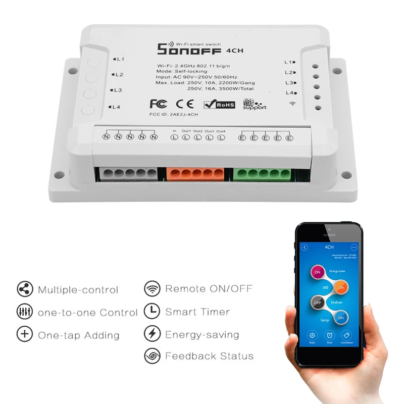 Product Name: Sonoff 4CH R2 10A Gang 4 kanałowy Wifi inteligentny przełącznik automatyki domowej RF światło zdalne wsparcie 4 urządzenie praca z Alexa Google Home