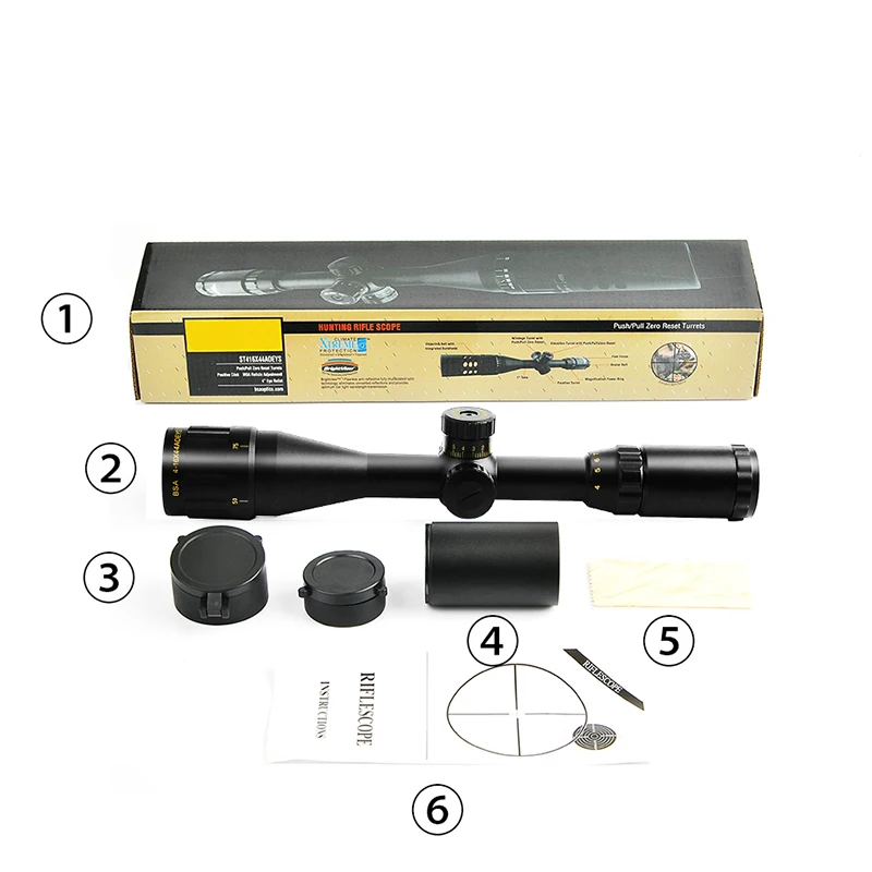Product Name: Optyka BSA 4 16x44 AOE taktyczna luneta celownicza celownik optyczny zielony czerwony podświetlane lunety myśliwskie karabin zakres Sniper Airsoft wiatrówka