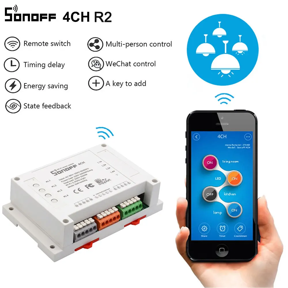 Product Name: Sonoff 4CH R2 inteligentny zegarek wi fi 4 Gang włącznik światła wi fi inteligentnego domu pilot aplikacji przerywacz przekaźnik współpracuje z Alexa Google domu