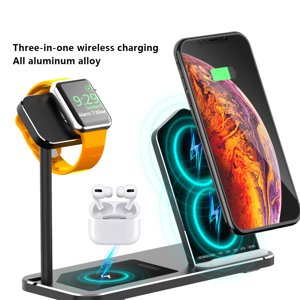 Product Name: Bezprzewodowa stacja ładująca 3 w 1 stacja dokująca do apple airpods Pro iPhone iWatch Watch wysokiej klasy podstawka ładująca QI ze stopu aluminium