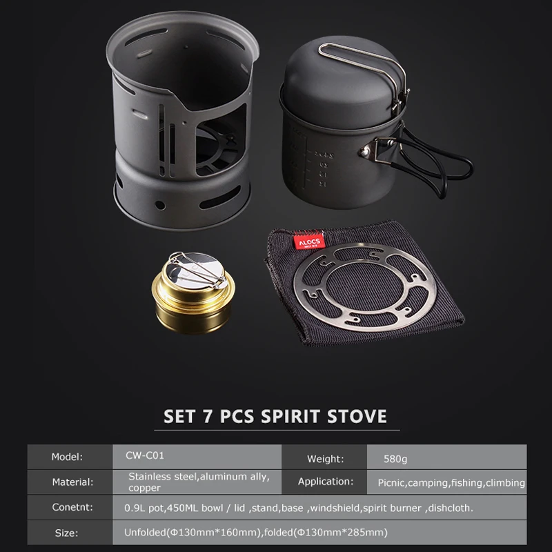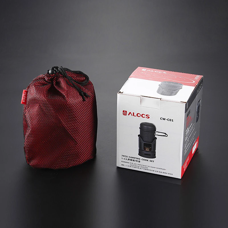 Special Offer ALOCS CW C01 zestaw 7 sztuk odkryty naczynia Camping piesze wycieczki piknik naczynie do gotowania duch kuchenka palnik na alkohol Pot miska szyby Discount 30% Today!
