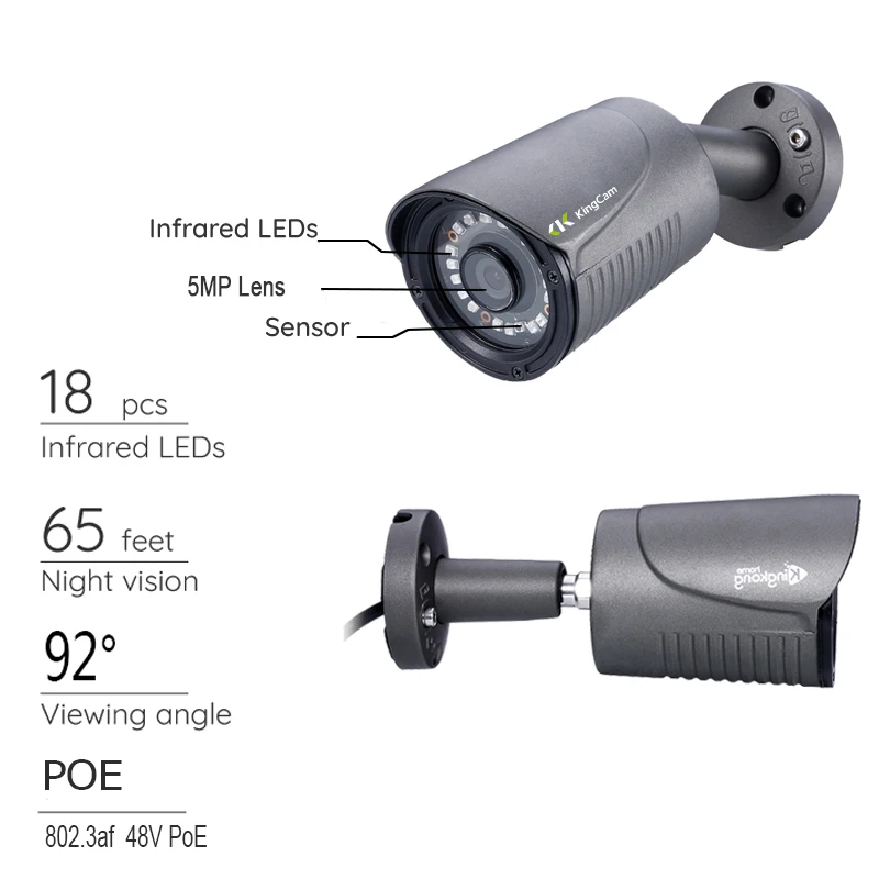 Product Name: KingCam H.265 5MP IP aparat fotograficzny aluminiowa Metal wodoodporna typu bullet zewnętrzna POE kamera IP kamera bezpieczeństwa cctv ONVIF ONVIF kamera IP C