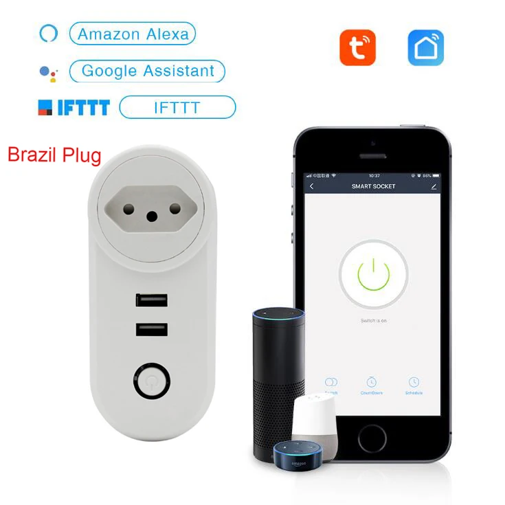 Special Offer Brazylia WIFI inteligentny BR wtyczka z dwoma portami USB gniazdo rozrządu gniazdo bezprzewodowe sterowanie głosem współpracuje z Alexa Google domu Discount 28% Today!