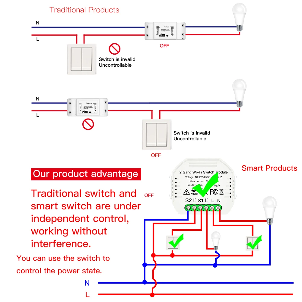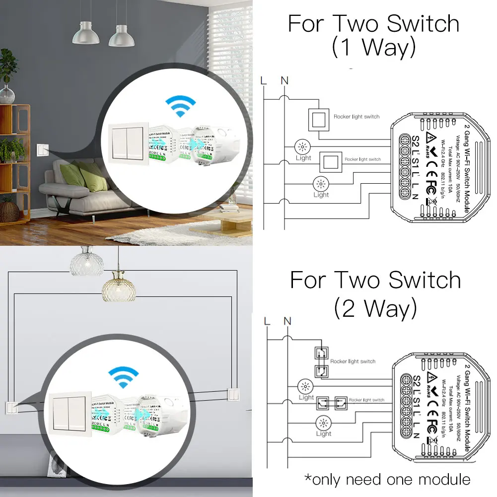Product Name: 2 Gang WiFi inteligentny włącznik światła ukryty moduł diy inteligentne życie pilot aplikacji Tuya działa z Alexa Echo Google Home 1 2 Way