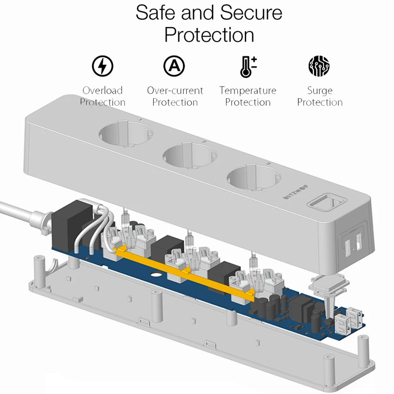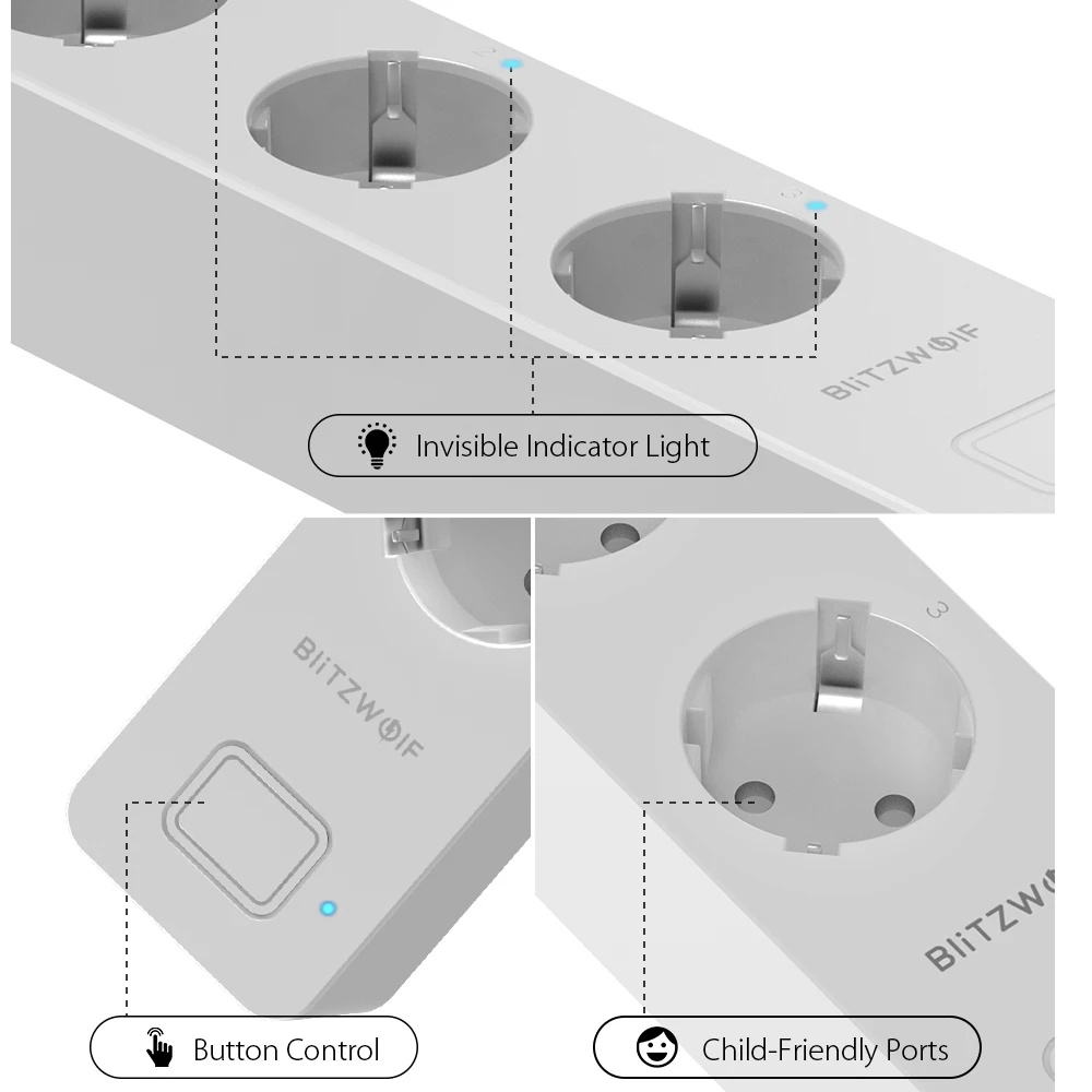 Product Name: BlitzWolf BW SHP9 3300W 15A 3 gniazdo podwójne gniazdo USB inteligentna listwa zasilająca pilot aplikacji zegar sterujący praca z amazon alexa Google Home