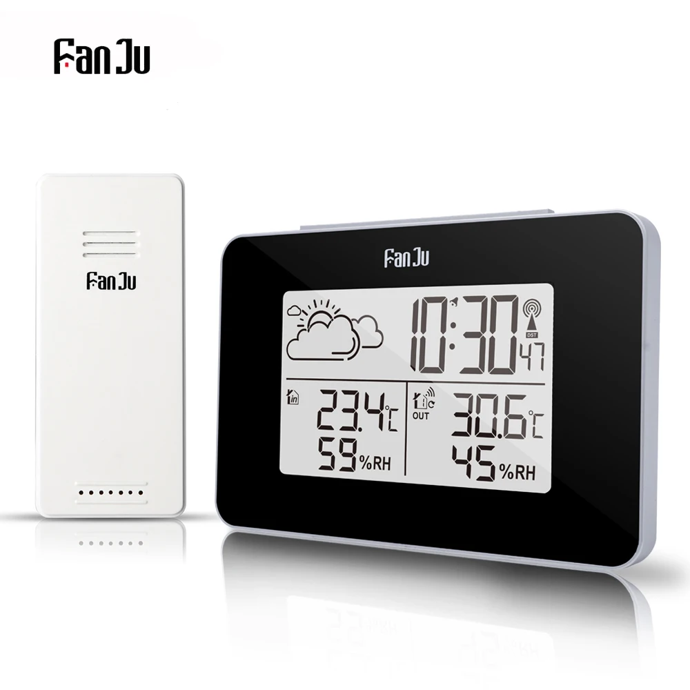Special Offer FanJu FJ3364 cyfrowy budzik stacja pogodowa czujnik bezprzewodowy termometr higrometrowy wielofunkcyjny zegar biurkowy LED Discount 50% Today!