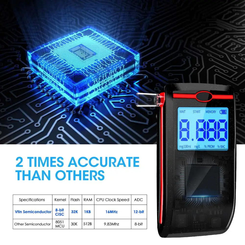 Special Offer VTIN akumulator alkomat przenośny wyświetlacz lcd alkomat zawód dokładność alkomat z 10 sztuk ustnik Discount 30% Today!