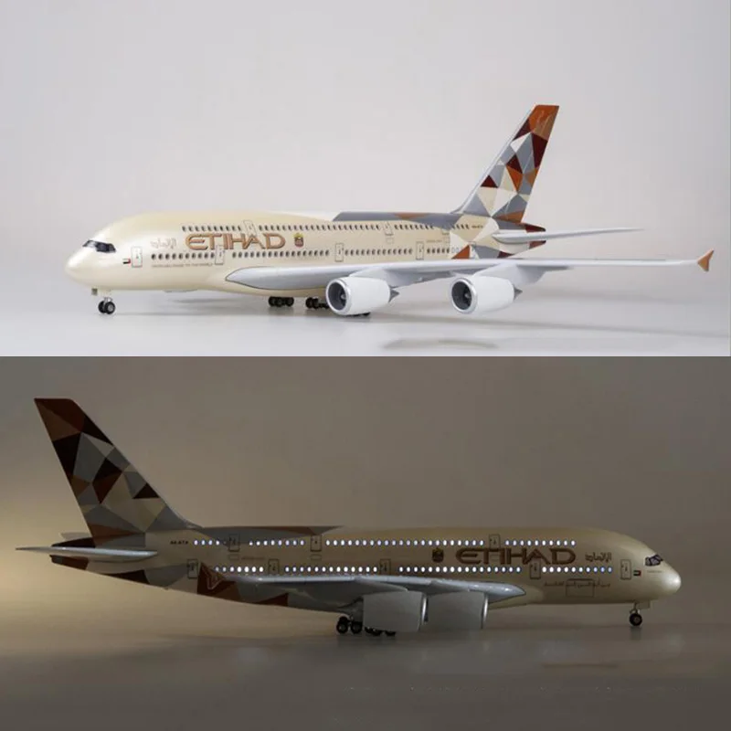 Special Offer 1 160 skala 50.5CM samolot Airbus A380 ETIHAD Model linii lotniczej W światło i koło Diecast żywica z tworzywa sztucznego samolot do kolekcji Discount 19% Today!