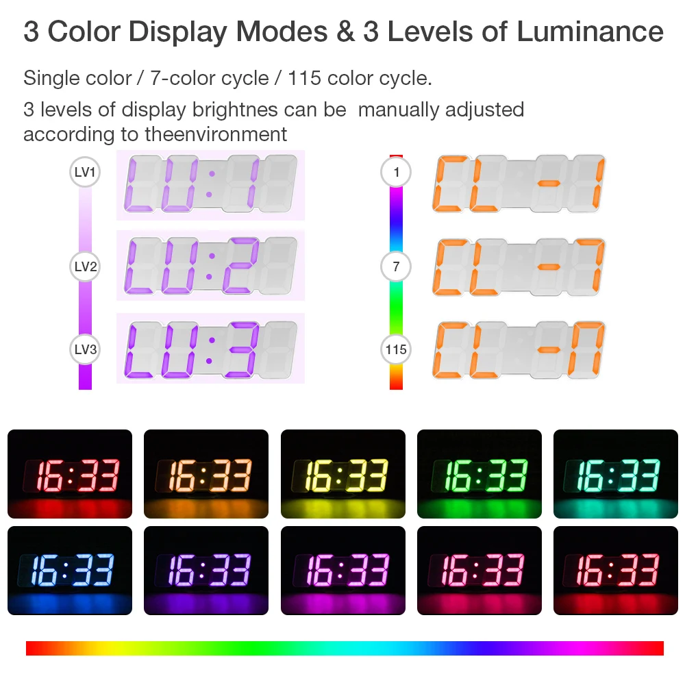 Product Name: Kreatywny pilot 3D cyfrowy zegar ścienny led z 115 zmiana kolorów lampka nocna magiczny pulpit zegar dekoracja ściany